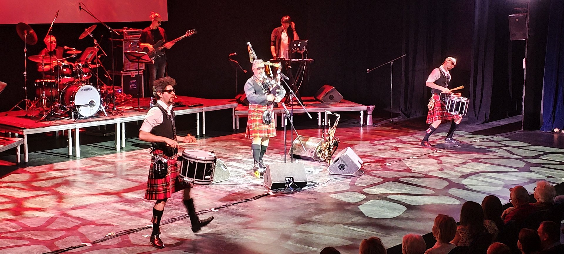 В первом "волыночном" отделении прежде всего обратил внимание на его новую электронную волынку RedPipe, которая позволяет играть вообще все ноты, даже полутоновые, в отличие от обычной. Это как если пианисту можно было играть только белыми клавишами, а теперь можно всеми, - огромная творческая свобода. Круто. Плюс он теперь и на флейте, и на саксофонах играет же!